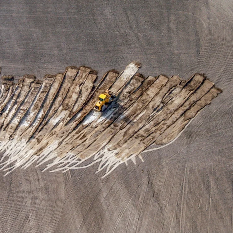 Surreal yellow paints the landscape.